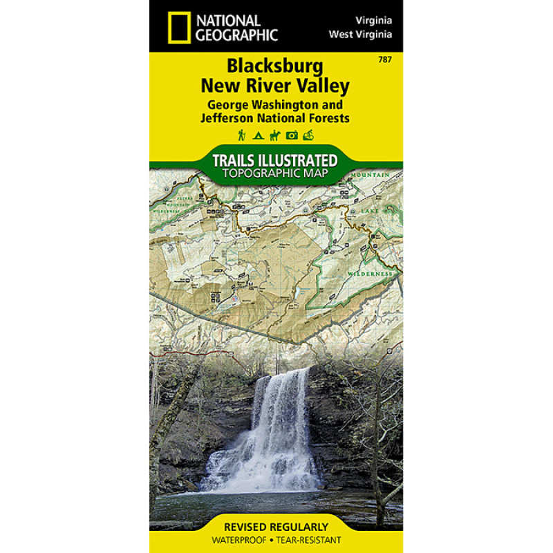 Outdoor enthusiasts seeking the bountiful recreational opportunities in southeastern Virginia will marvel at National Geographic’s Trails Illustrated map of Blacksburg and New River Valley. Expertly researched and created in cooperation with the U.S. Forest Service and others, the map delivers unparalleled detail of southern George Washington and Jefferson National Forests and the surrounding area from Brush Mountain East Wilderness in the northeast to Beartown Wilderness in the southwest. Also covered are Little Wolf Creek, Kimberling Creek, Garden Mountain, Brush Mountain, Mountain Lake, Peters Mountain and Hunting Camp Creek Wilderness areas.