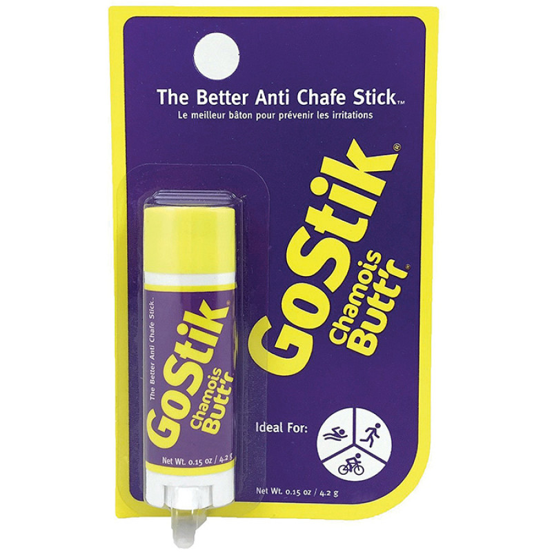 Chamois Butt\'r GoStik® is designed to prevent chafing and skin irritation. This advanced formula glides on quickly to lubricate your skin. Ideal for swimming, biking, running, hiking, walking or any other activity that causes skin irritation due to clothing rubbing against the skin. Contains no artificial fragrances or colors. Washes off skin and clothing with soap and water. Chamois Butt\'r products are paraben and gluten free. Made in the USA.
