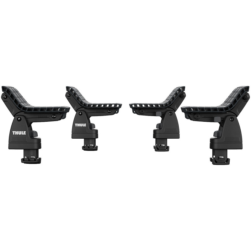 DockGrip Kayak Saddle is a versatile, horizontal kayak carrier with large cushioned, flexible pads that conform to a large range of hull shapes as well as SUPâs. It fits a variety of Thule rack systems, round bars and most factory racks due to T-Track and FlipFit brackets. The DockGrip accommodates kayaks and SUPâs up to 36 inches wide and 75 lbs. Two independent pivoting paddles with angle- setting lever for a variety of hull shapes. Secure the kayak or SUP using center load straps with protective buckle bumpers and QuickDraw bow and stern tie-downs.