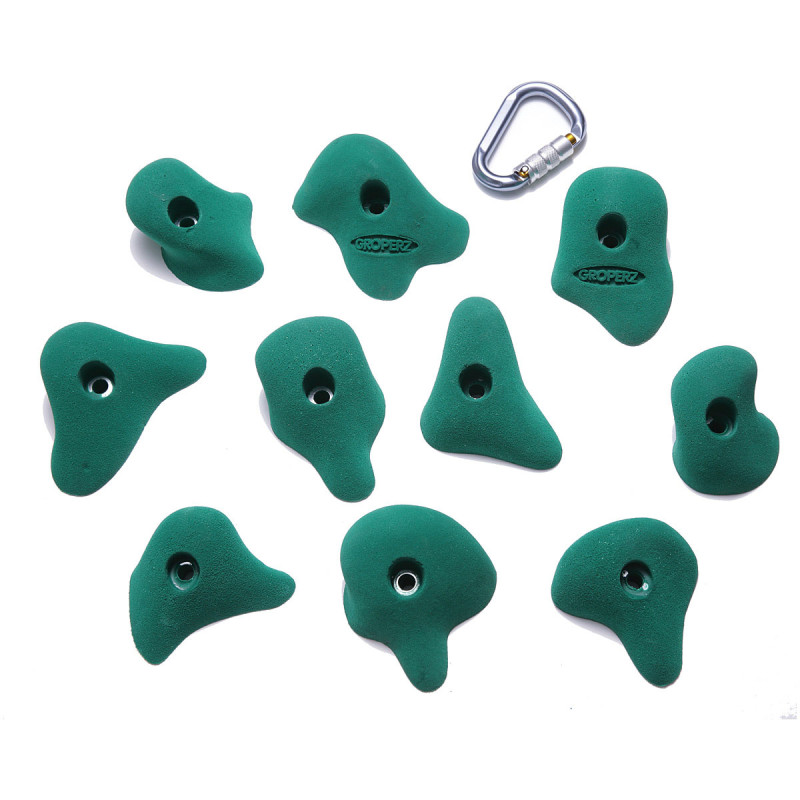 Youâll love this great set of low-profile, comfortable jugs. Easy to grab, clean and simple. Great for kids and adults (single hand). Designed by Tony Reynaldo. Note: Carabiner is for size reference and not included.
