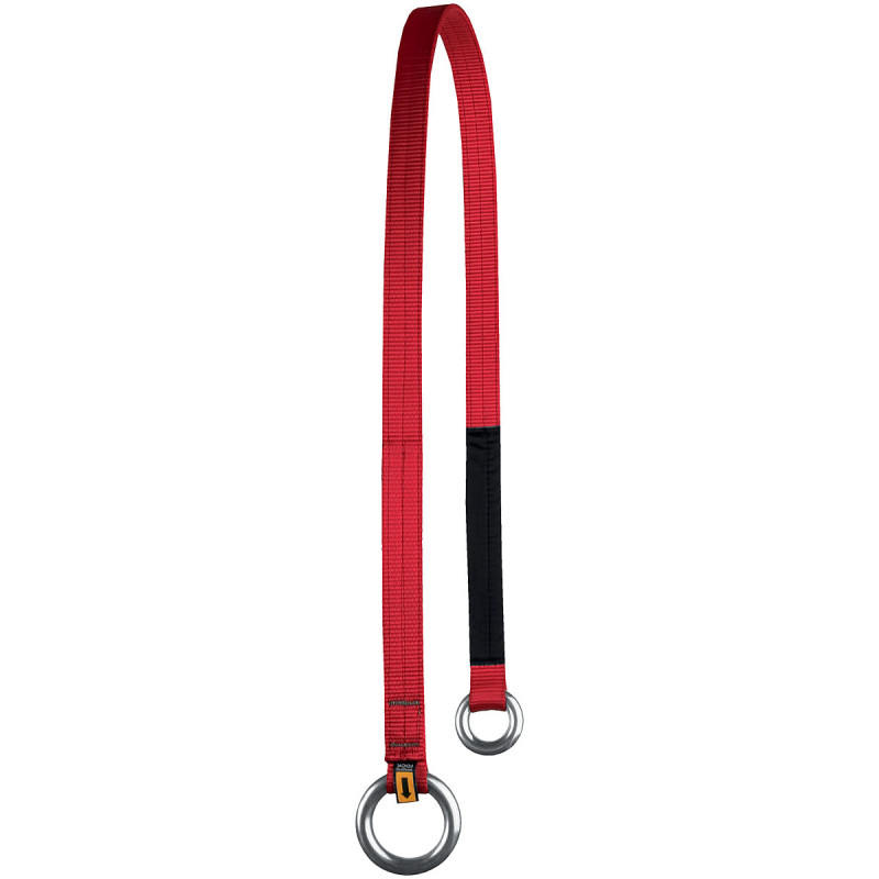 Sling intended for use in tree climbing as belay anchor. The different size of the rings enables easy and quick installing and removing of the sling. As well suitable in industry as an anchor device. Length includes the ring.Availablewith aluminum or steel rings.Three layer webbing. Red color for better visibility.