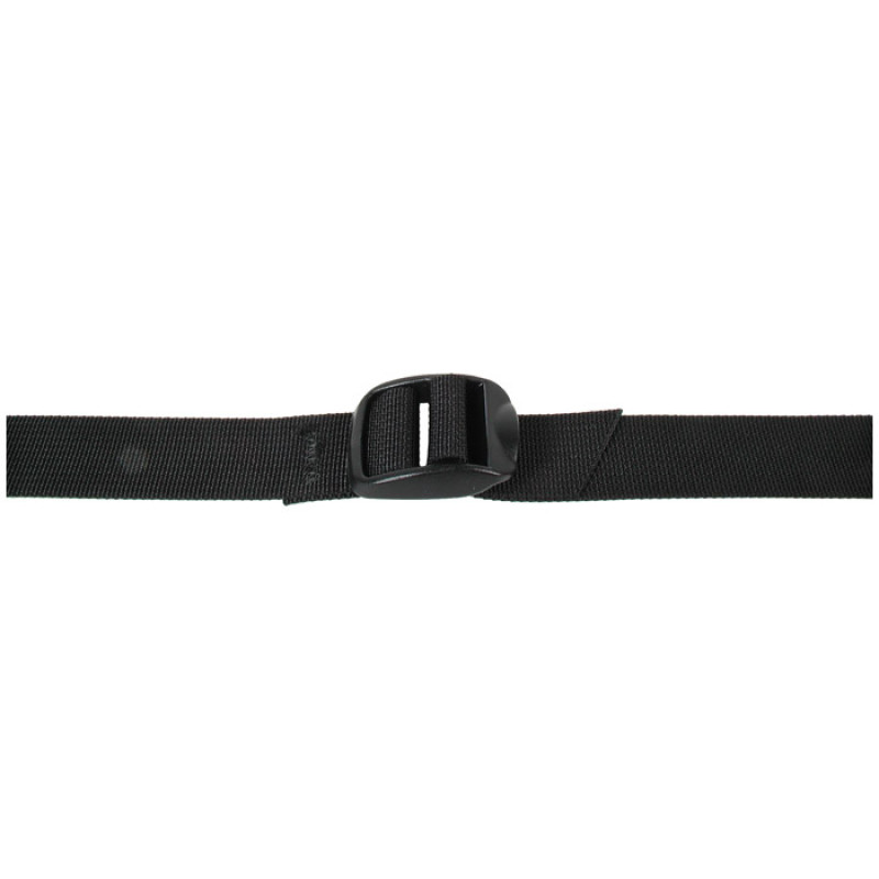 Universal accessory straps made from 3/4" and 1" wide flat nylon webbing with ladderlock buckles. 2 per pack in polybag with header.