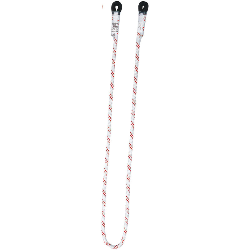 Stitched loops with plastic reinforcement for holding carabiners. Lanyard "I" has to be used as a component of a fall arrest system.
