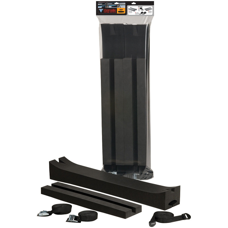 Non-skid laminate. SUP Carrier Kit: Includes: 2 Universal SUP/SOT Non-Skid Foam Blocks 2 SUP Stacker Blocks 2 9â Block Straps 2 15â Center Straps with Cam Buckle. SUP/SOT Universal Block: 3.75in H x 4.75in D x 31.5in W SUP Stacker Block: 1.25in H x 4.75in D x 23.25in W